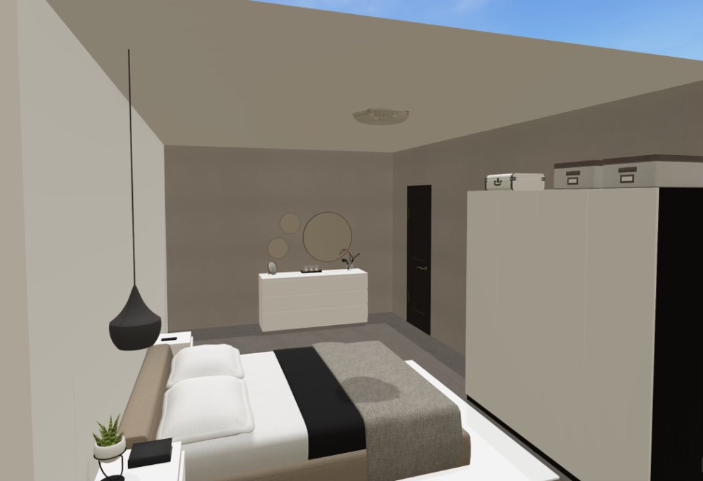 - Vytápění a klimatizace: Podlahové vytápění s regulací teploty v každém pokoji, klimatizace v ložnici, obývacím pokoji i dětských pokojích.