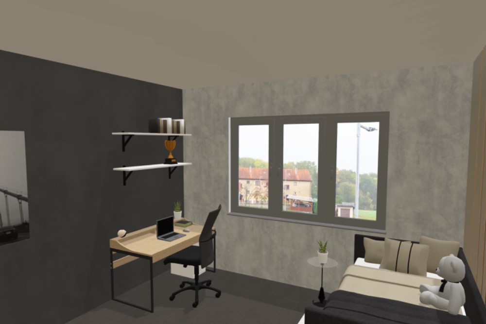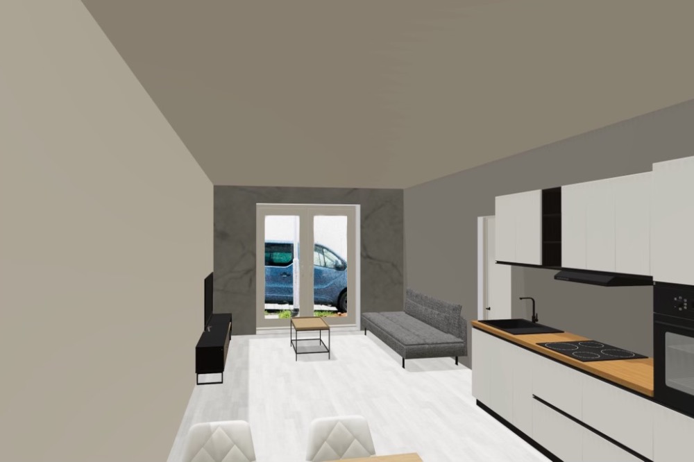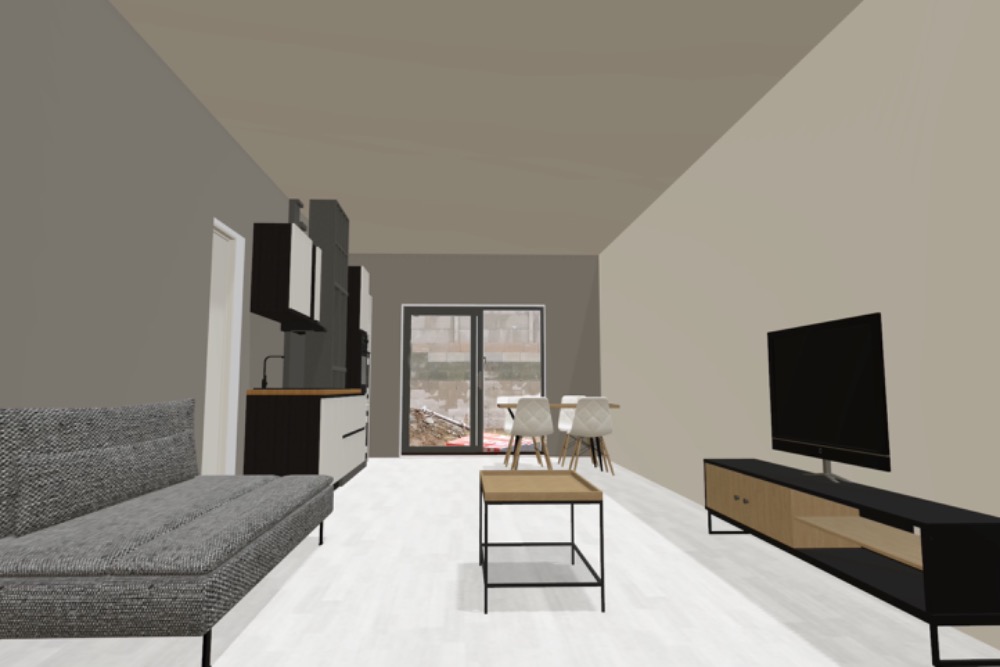 - Podlahy: Vylité 22cm vrstvou betonu, na ni bude položena vinylová podlaha (standardní provedení do 600 Kč/m² v ceně, dražší varianta za příplatek).