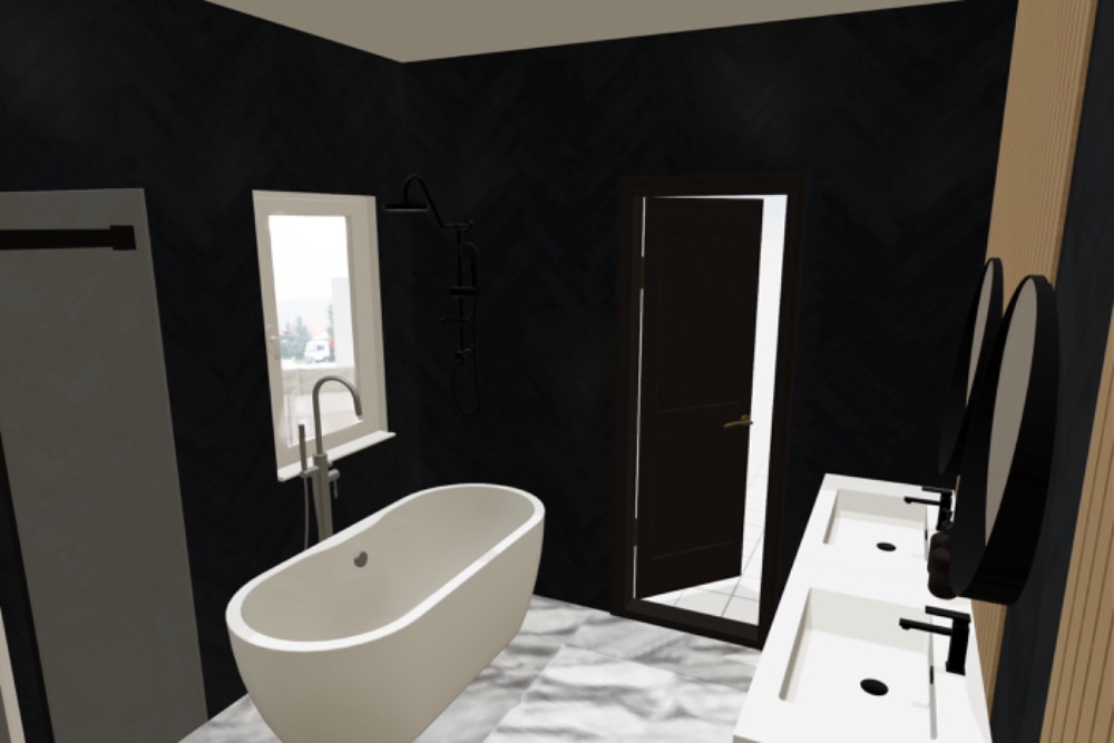 - Koupelna: Možnost vlastního výběru obkladů do 600 Kč/m² (dražší varianta za příplatek). Vybavená vanou, sprchovým koutem, dvojumyvadlem a toaletou.